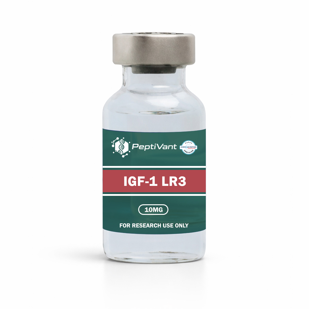 IGF-1 LR3 is a long-acting growth factor studied for its role in cellular growth, nutrient uptake, and regeneration. It is frequently explored in research related to muscle development and recovery processes.